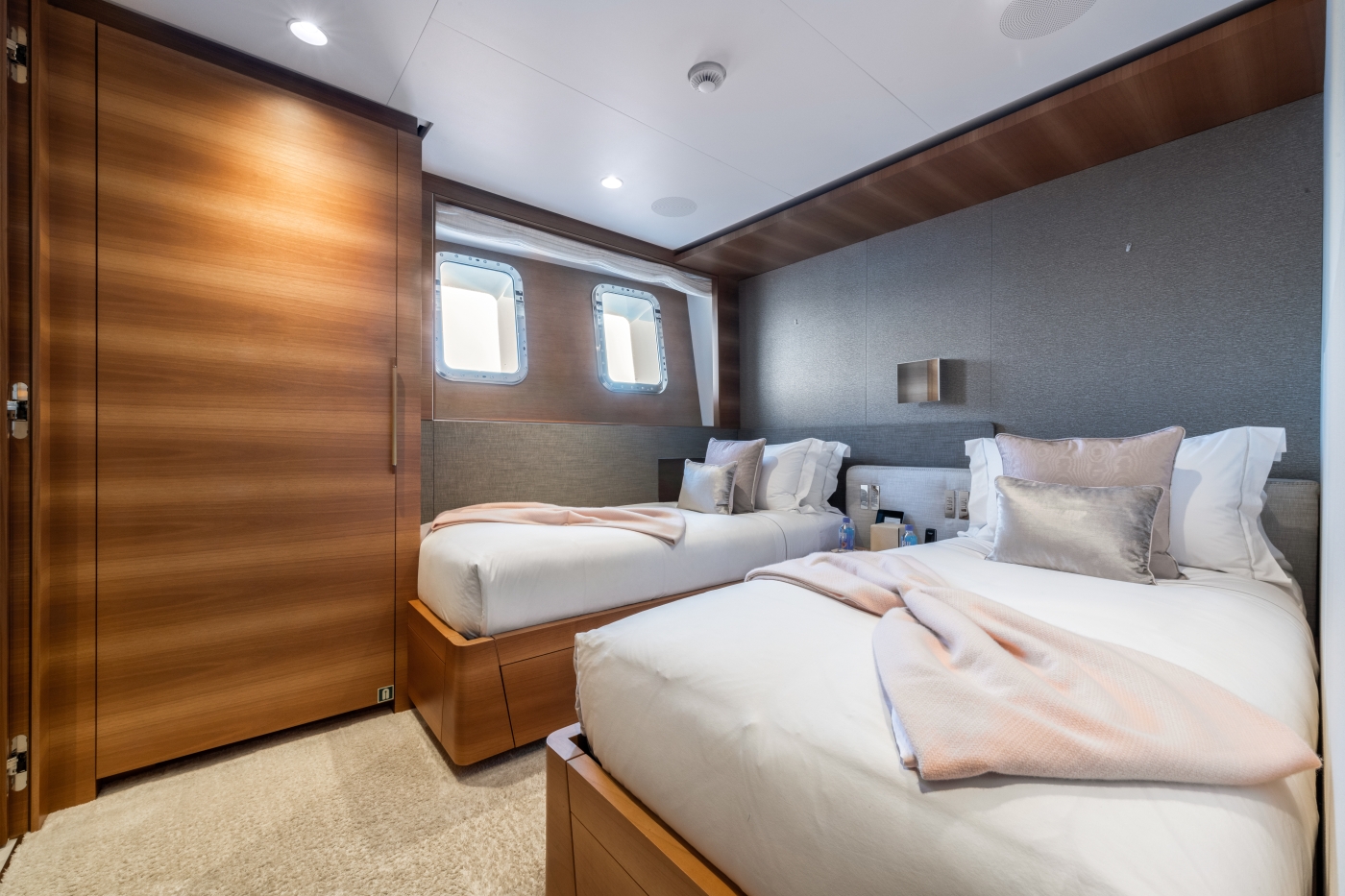 Near the glass sliding doors out onto the main deck aft there is a wet bar, ideally positioned to serve guests entertaining indoors or alfresco.