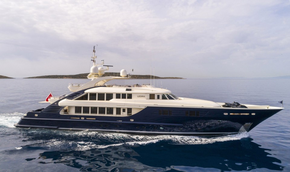 Luxury yacht LEDRA (Ex Ellix Too) provides yacht charters in The Mediterranean, Europe, Directory, Carian Coast, Slovenia, Turkey, Rhodes, Paros, and Marmaris.