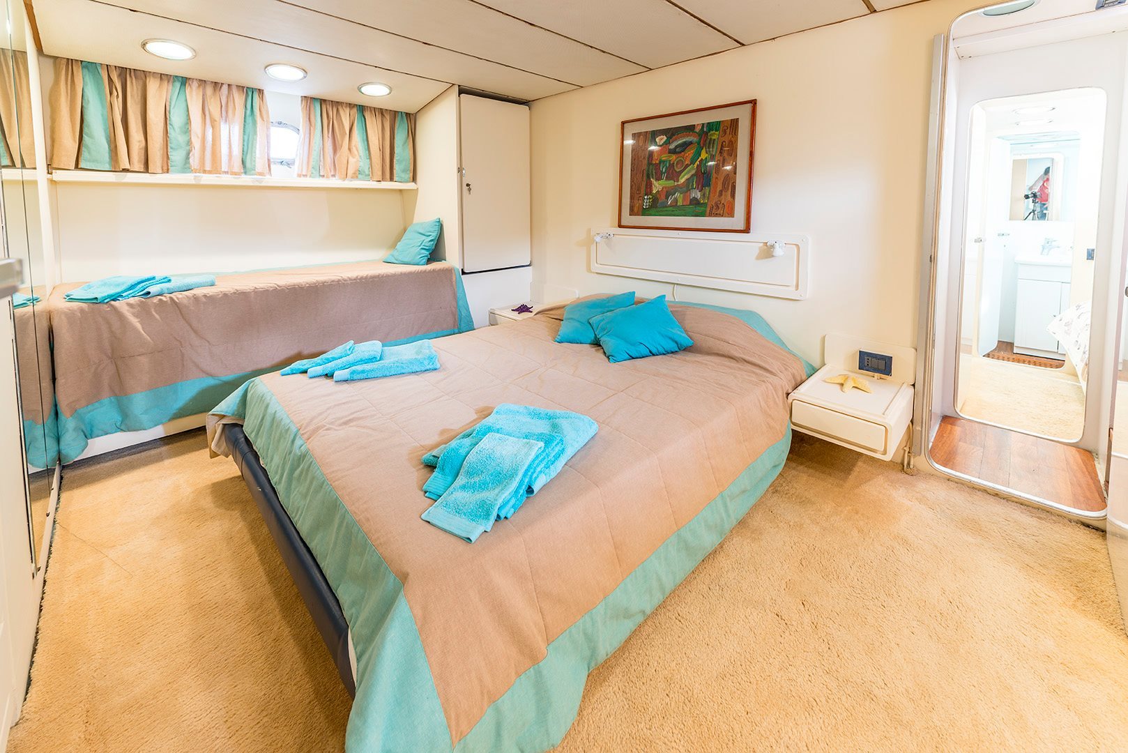 Accommodation aboard ELECTRA is provided in one master suite with two additional single berths, two VIP cabin each with additional single berth and one twin cabin with two single beds. Tenders & Toys: