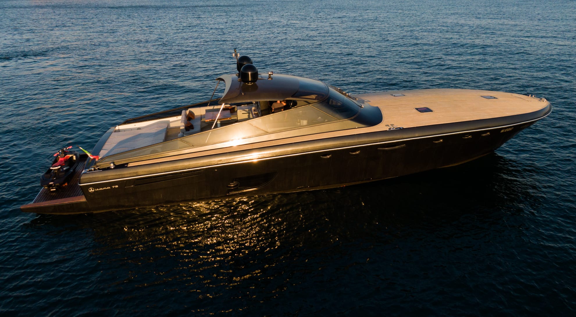 BLUE MAMBA is a 23.54m (77' 3") motor yacht built by ITAMA in 2013. She is a fast, open-style sports yacht, featuring three cabins sleeping up to six guests. There is a crew of two on board.