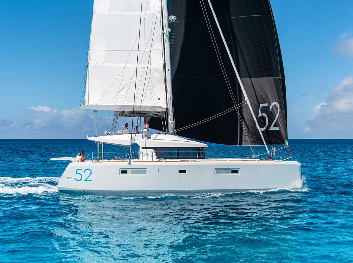 Sailing catamaran FLO is a 15.84m (52') yacht offering crewed charter vacation for up to ten guests. She was built by Lagoon CNB Bordeaux in France, launched in 2018 and featuring a five-cabin layout. She has a crew of three on board.