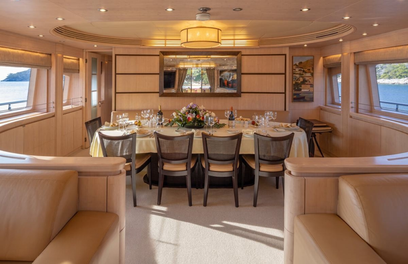 M/Y GLAROS (ex CALMA III) is a new Italian-designed and built Maiora 40m luxury motor yacht built in 2006 and refitted in 2019. The yacht’s interior gives the impression of being larger due to the clever use of natural light & the wenge wood detailing, the light fabrics and the minimalistic style.