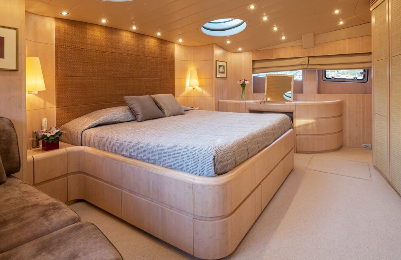 M/Y GLAROS (ex CALMA III) is a new Italian-designed and built Maiora 40m luxury motor yacht built in 2006 and refitted in 2019. The yacht’s interior gives the impression of being larger due to the clever use of natural light & the wenge wood detailing, the light fabrics and the minimalistic style.