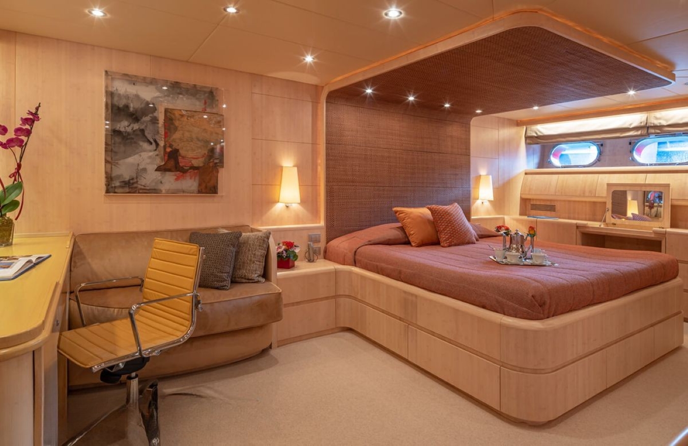 The main deck of GLAROS hosts the VIP cabin with its Spa Pool, while one the lower deck is the master cabin with Spa Pool and a second WC, two double and two twin cabins.