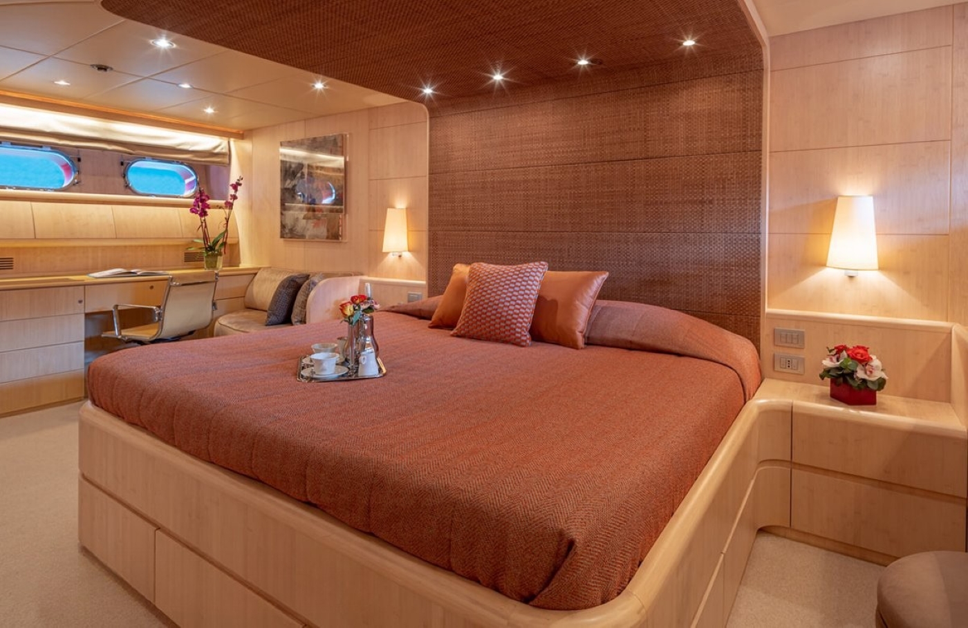 M/Y GLAROS (ex CALMA III) is a new Italian-designed and built Maiora 40m luxury motor yacht built in 2006 and refitted in 2019. The yacht’s interior gives the impression of being larger due to the clever use of natural light & the wenge wood detailing, the light fabrics and the minimalistic style.