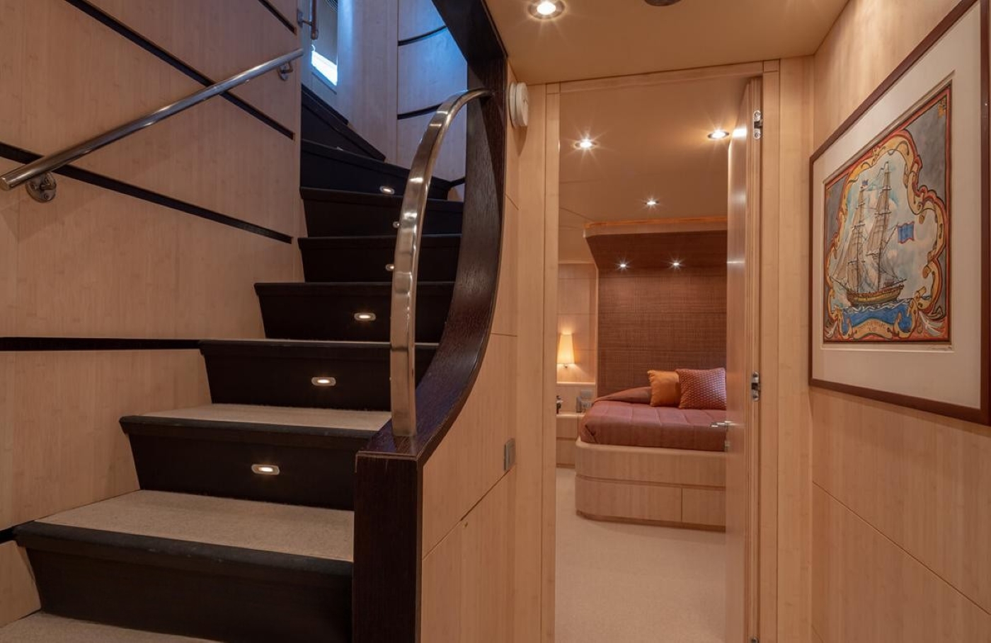 M/Y GLAROS (ex CALMA III) is a new Italian-designed and built Maiora 40m luxury motor yacht built in 2006 and refitted in 2019. The yacht’s interior gives the impression of being larger due to the clever use of natural light & the wenge wood detailing, the light fabrics and the minimalistic style.