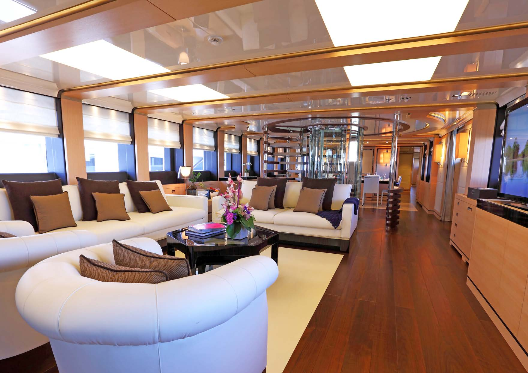 Her sleek raked bow, traditional grey hull and white superstructure are constructed from steel and the 2016-refitted interiors are the work of Tommaso Spadolini & Bernardo Papetti from Studio Spadolini.