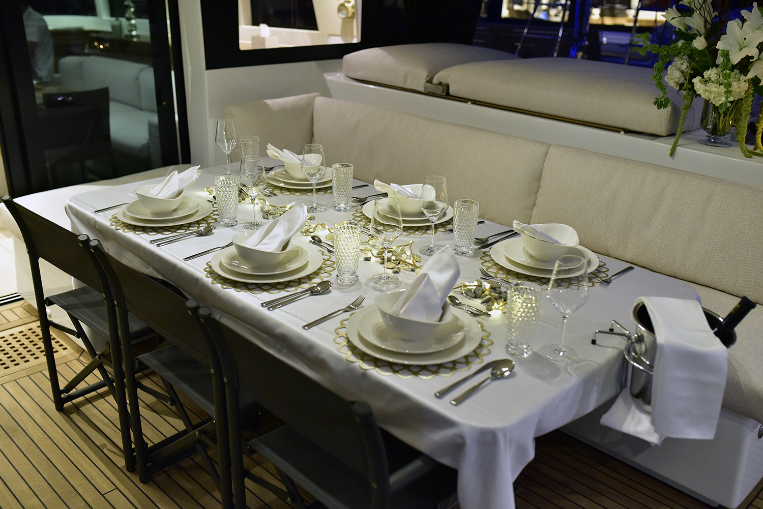 Her main salon offers a generous seating area with a convertible dining table, in an open plan style. Verticle windows provide exceptional natural light and views. Below decks are 5 double cabins, each of which boasts en-suite facilities.