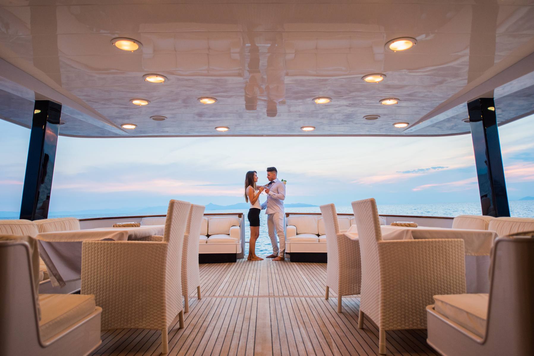 NOTABLE FEATURES FOR LADY RINA: Spacious open plan salon and dining ~ Four generous guest cabins ~ Alfresco dining ~ Large aft deck ideal for entertaining ~ Vast sundeck ~ Jacuzzi ~ Water toys