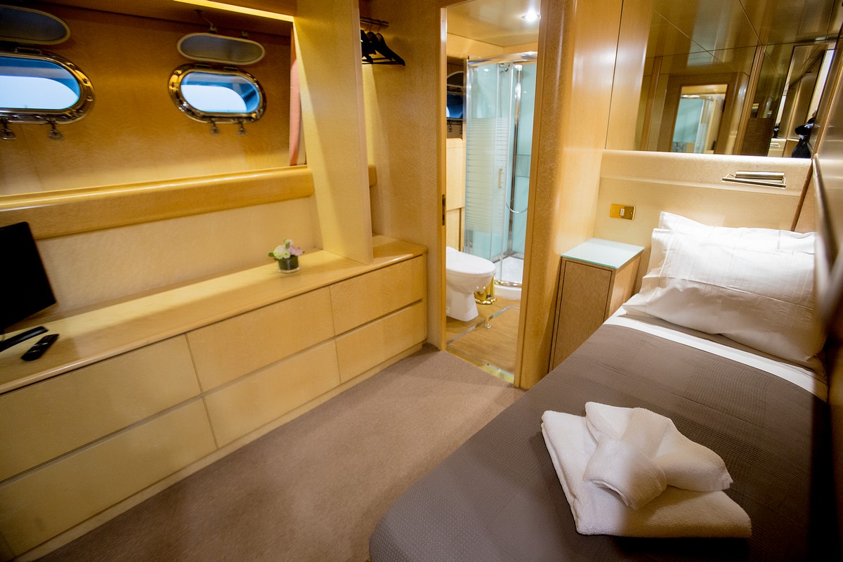 She measures 36.70m (120'5'') and accommodates 12 charter guests, over 6 cabins.