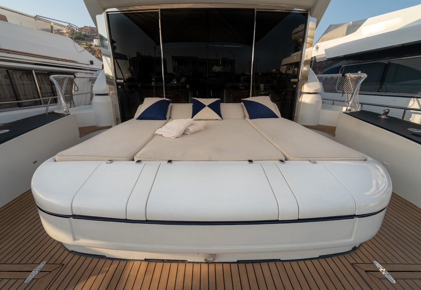 The main deck aft is fitted with a double sun pad and additional double sun pad can be found on the foredeck.