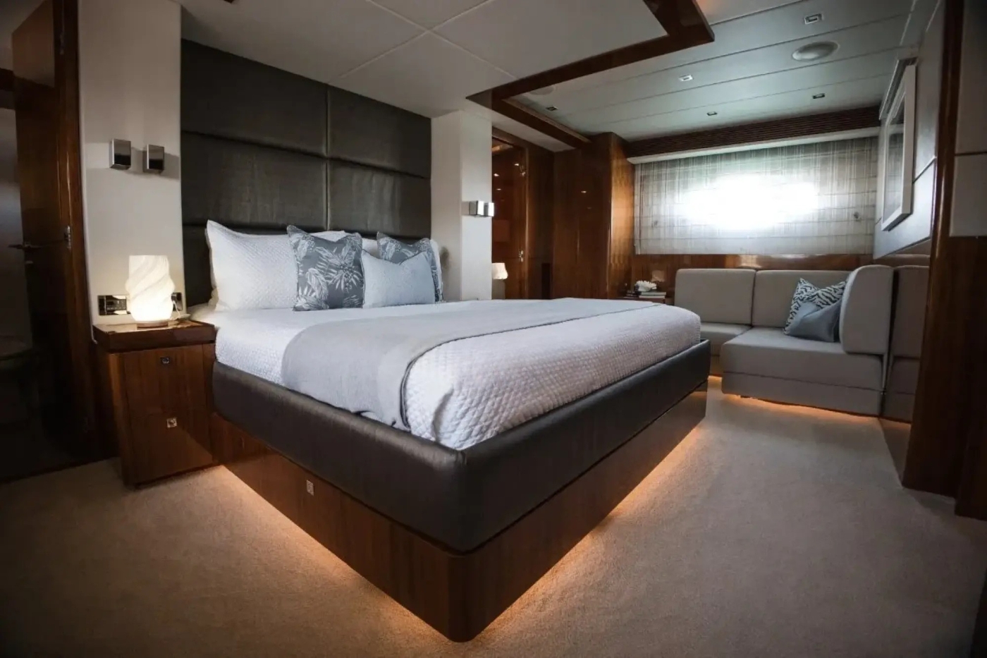 The accommodation sleeps a maximum of 8 guests across 4 en-suite cabins: 1 Master suite, 1 VIP stateroom and 2 twin cabins convertible to doubles.