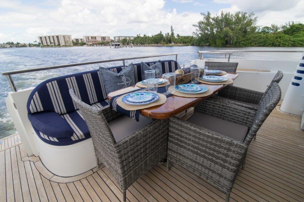Guests arriving by tender can disembark onto the swim platform and gain access to the main deck aft via staircases to the port and starboard sides.