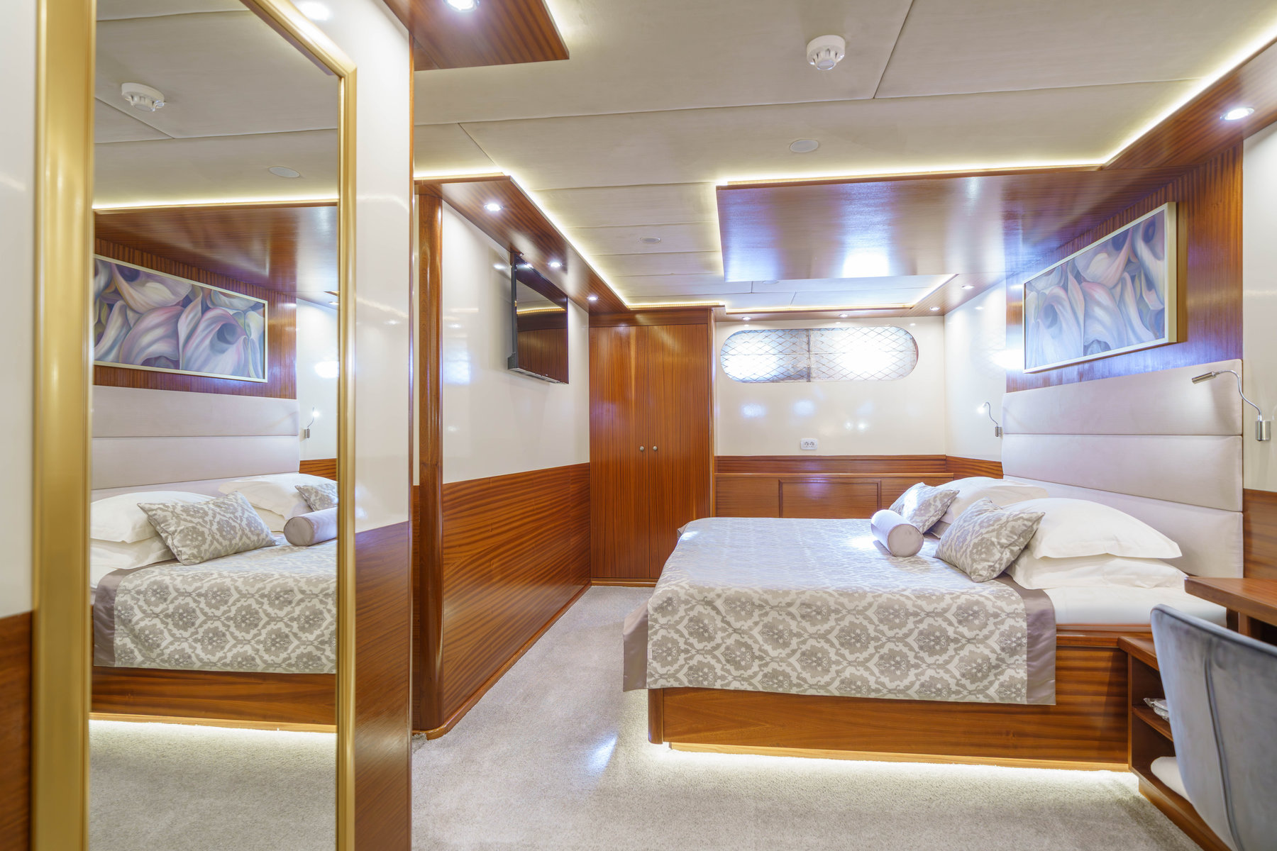 Guests will be able to unwind in the privacy of six luxury suites configured as a full beam master, four doubles and a twin. Two of the doubles are aft on the lower deck with their own private access from the main salon.