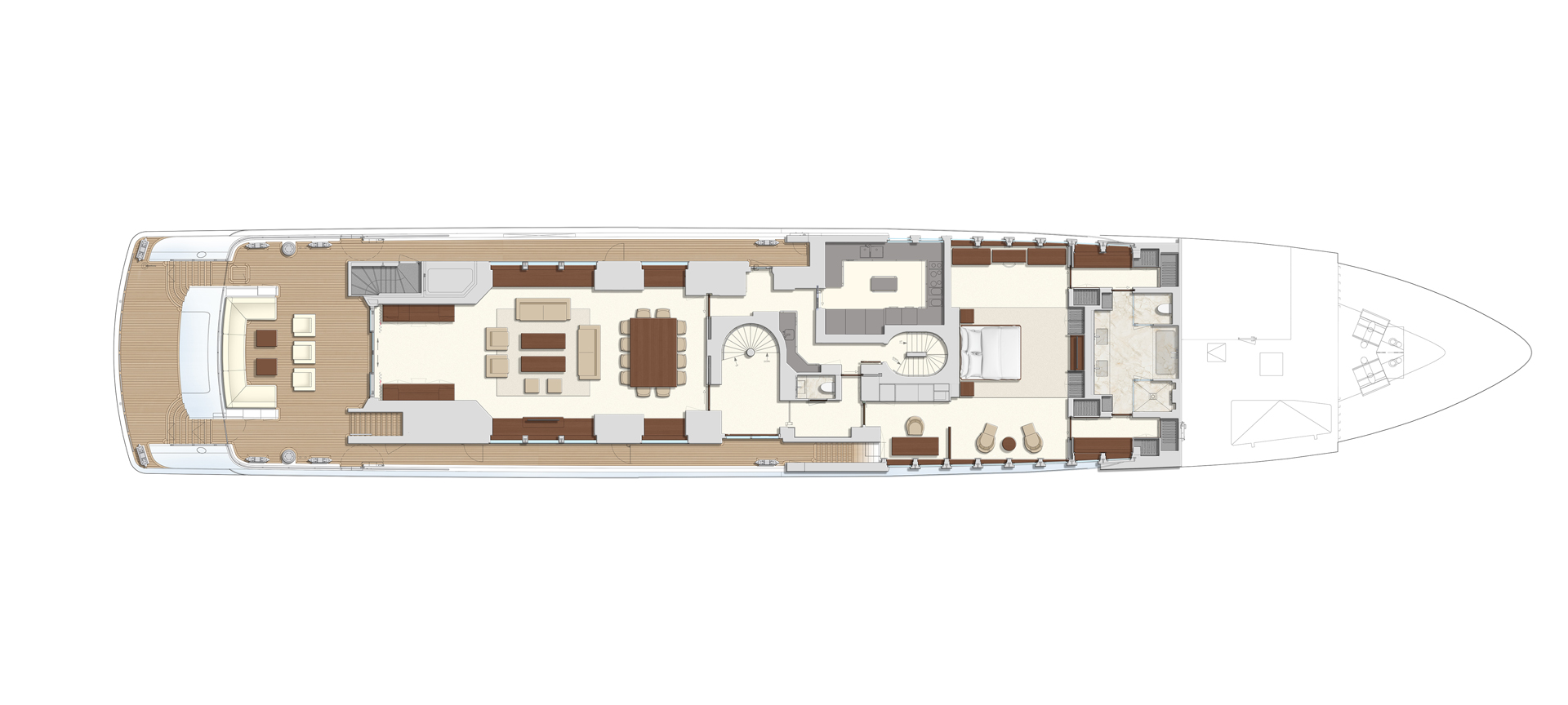 This 55m (180’) motor yacht features exterior design by Omega Architects while her elegant interiors were designed by Bannenberg & Rowell, accommodating up to twelve guests in six staterooms.
