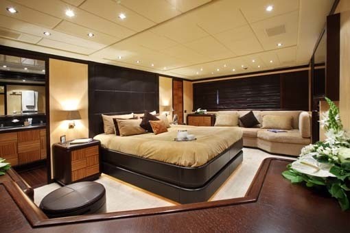 The interior decor is very tasteful in earthy tones. Master cabin with ensuite bathroom, one dressing room, private lounge and office (The office is equipped with 1 PC Notebook, 1 Printer Scanner Copier, and 1 Fax Machine). VIP double with ensuite bathroom and twin with ensuite bathroom. The beds are extremely large in the twin rooms.