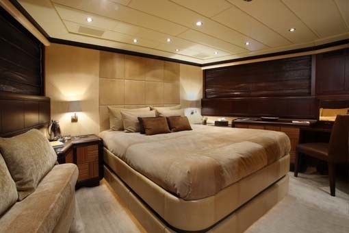 Motor yacht SAMIRA (ex Sealyon, Oscar 2) only has three cabins instead of the normal four so they are much more luxurious, especially the huge Master cabin, which is designed with comfort in mind. The interior decor is very tasteful in earthy tones.