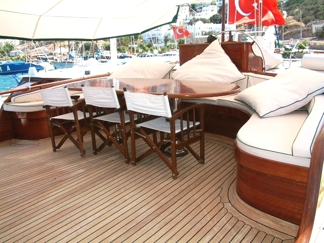 A generous aft deck has alfresco dining and full beam aft seating, great for soaking up the sun. Situated on the foredeck, is a seating area and deluxe jacuzzi. On top of the cabin house in a raised position are numerous sunpads.