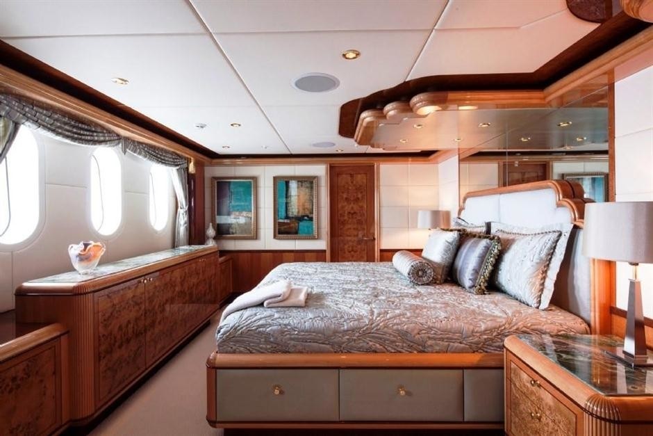 Lavish 57m/187ft custom superyacht by Trinity Yachts was constructed entirely out of aluminium in 2012 and offers guests an extensive range of onboard entertainment and services, including a cinema, putting green and stateroom convertible to a massage room.