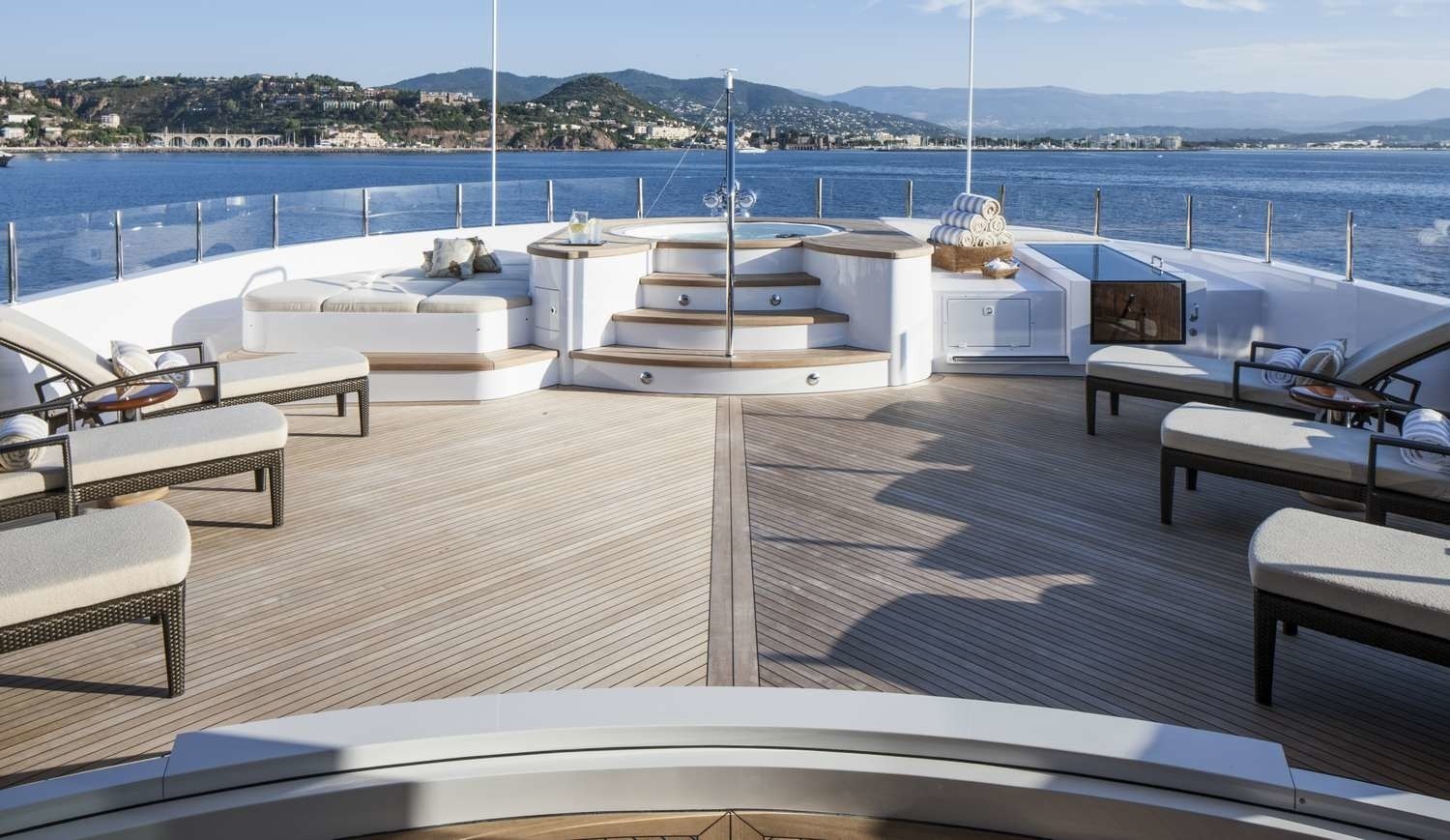NOTABLE FEATURES OF 57M CUSTOM SUPERYACHT: ~Approved RYA Water Sports Centre ~Sundeck Jacuzzi ~Putting green ~Master suite with private Jacuzzi ...