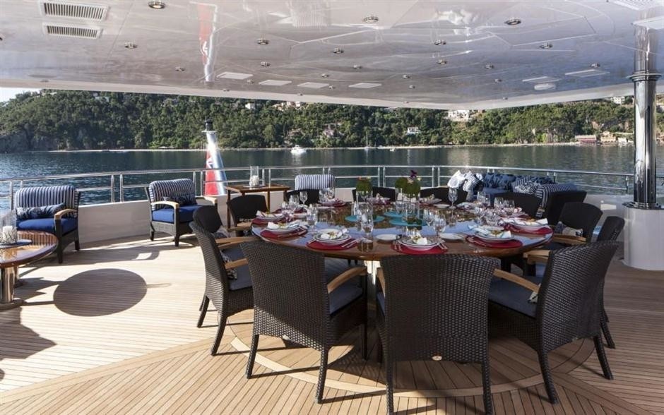 NOTABLE FEATURES OF 57M CUSTOM SUPERYACHT: ~Approved RYA Water Sports Centre ~Sundeck Jacuzzi ~Putting green ~Master suite with private Jacuzzi ...