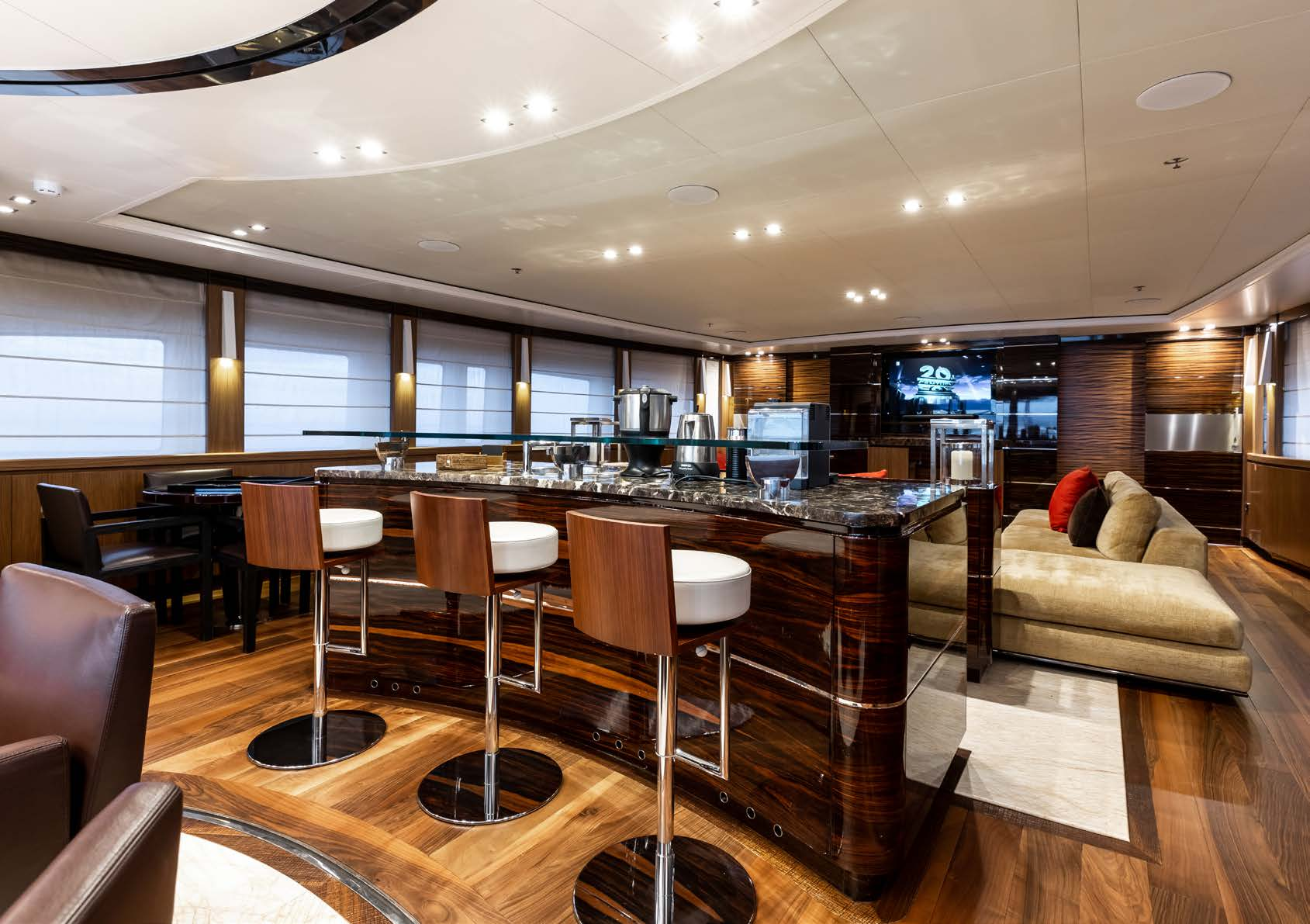 The forward section hosts sun loungers and a sizeable bar for refreshments to suit any event, day or night.