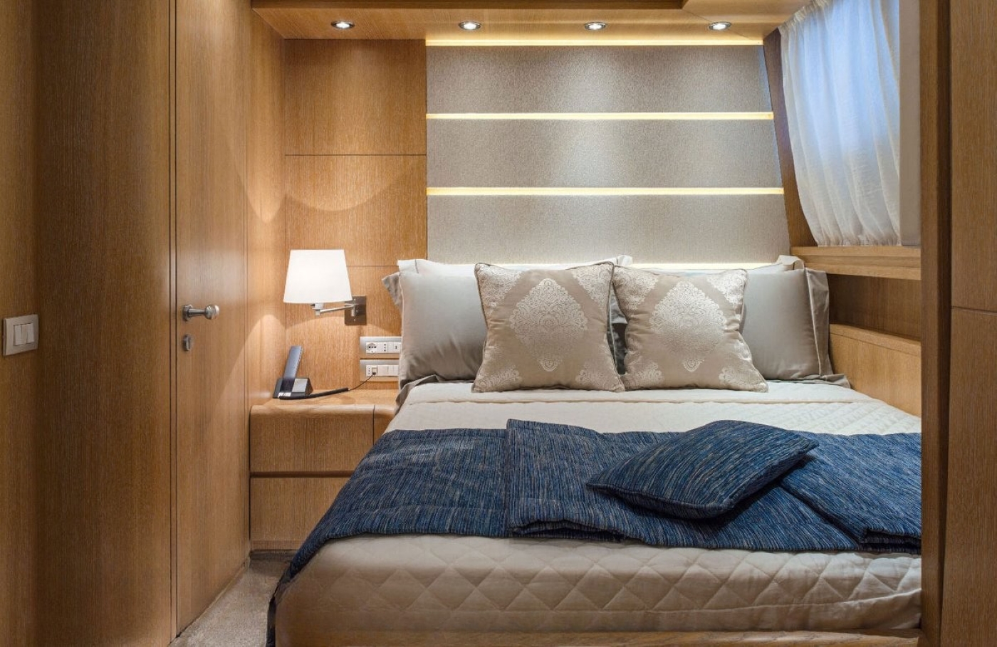 On the same deck located at the center of the boat there is one twin cabin (plus one Pullman bed) with ensuite bathroom with shower and one single cabin (plus one pullman) with ensuite bathroom with shower.