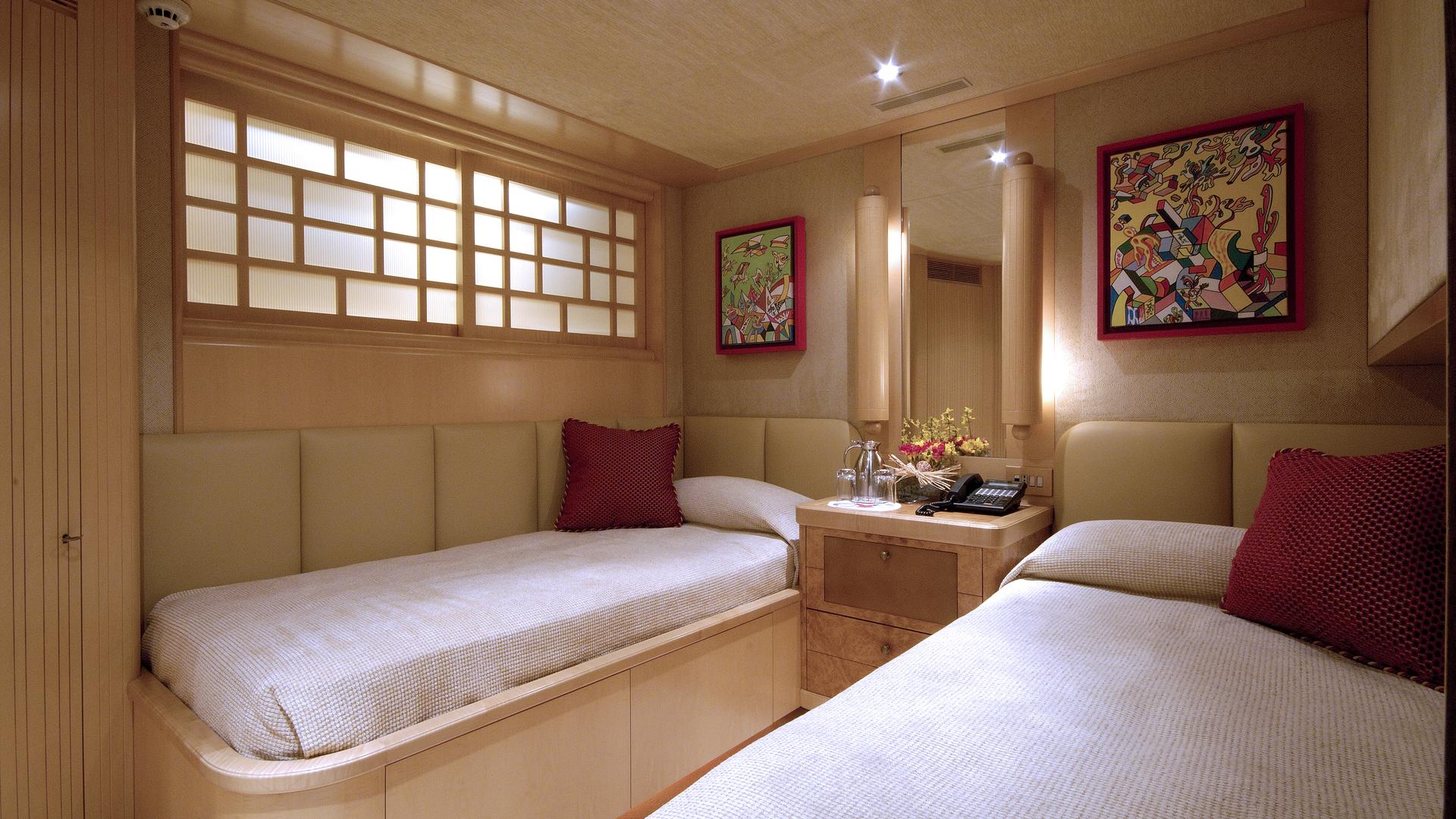 She is offering luxurious service by a crew of three and accommodation for up to eight charter guests in four cabins.