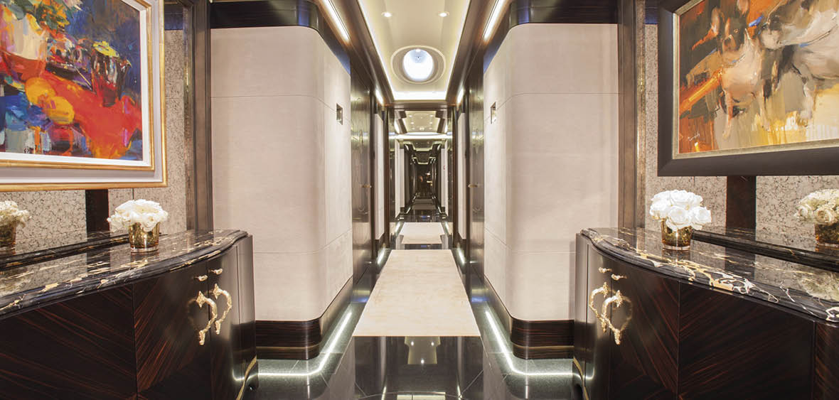 The extensive gym is equipped with the latest machines and a retractable landing opens the area up to the fresh air for outdoor exercise and rest while taking in the views. The salon will prepare guests to look their best for any special event, and the opulent spa massage room is the perfect place to unwind after a busy day.