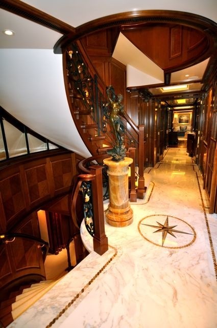 The engine room is farther aft with the voluminous tender garage in the stern.