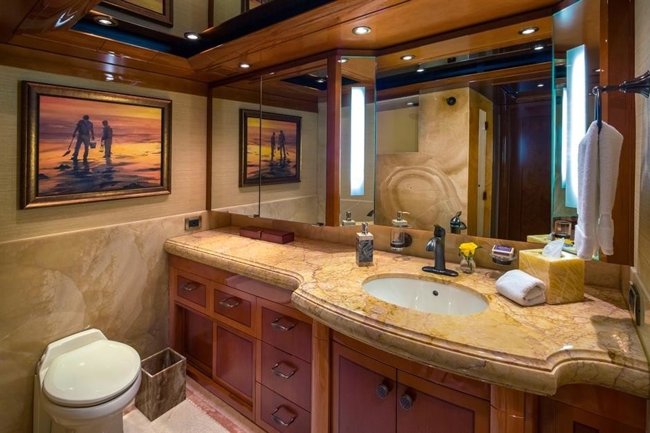 Within, there is an office/library, large en-suite bathroom and spacious bedroom that opens out onto the bridge deck aft.