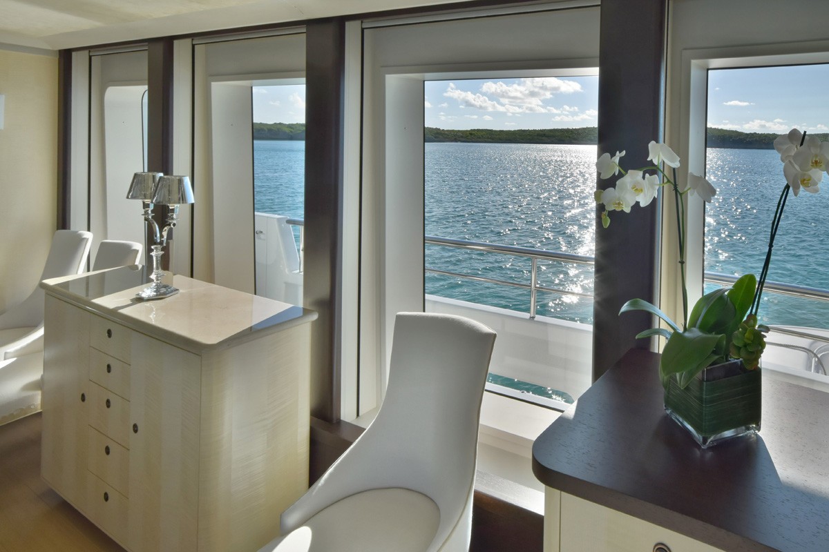 A bar to port will serve refreshments to guests throughout the event. The foredeck is fitted with a sofa and sunbed for relaxation while enjoying the uninterrupted views.