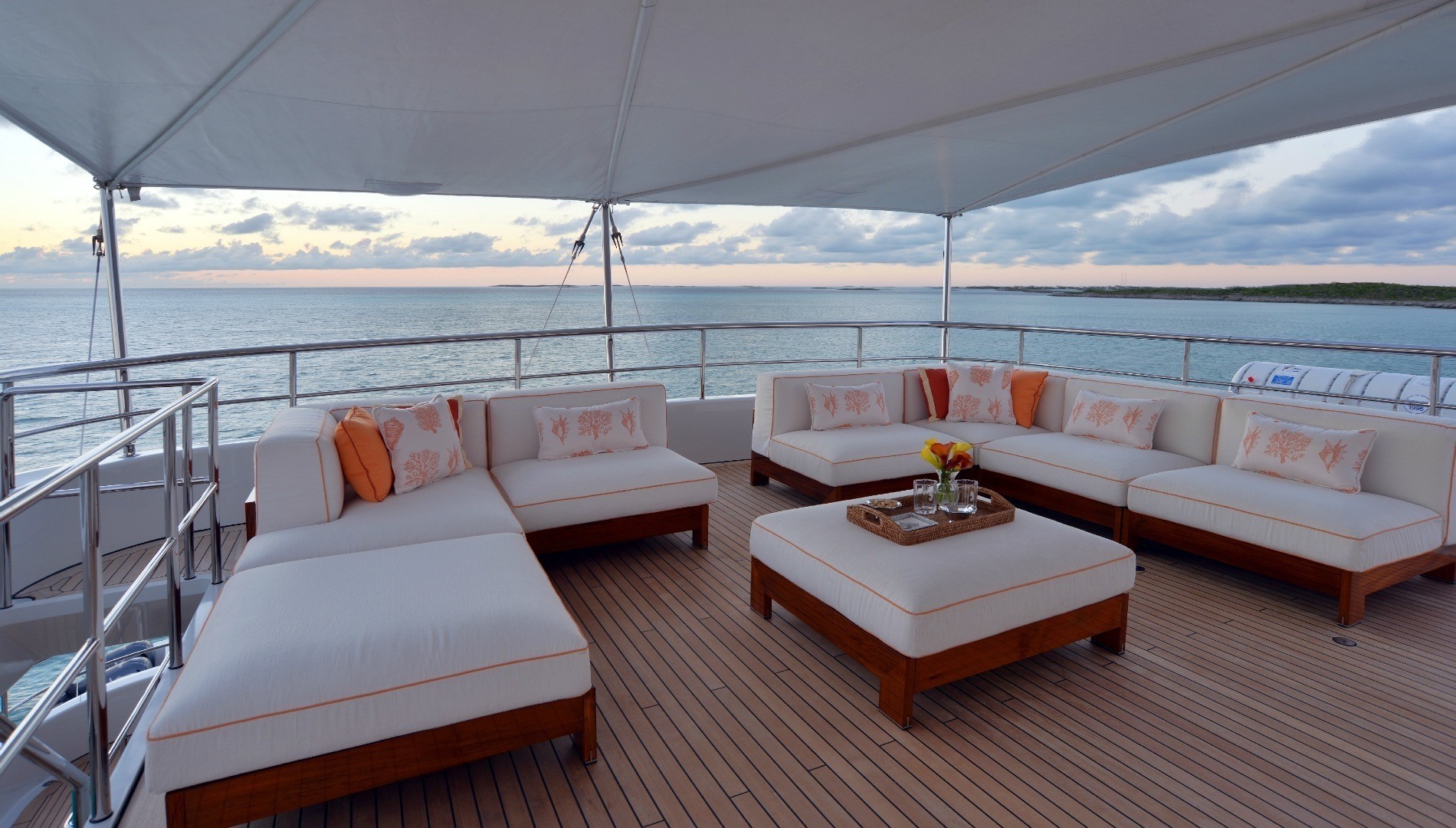 The foredeck is fitted with a sofa and sunbed for relaxation while enjoying the uninterrupted views.