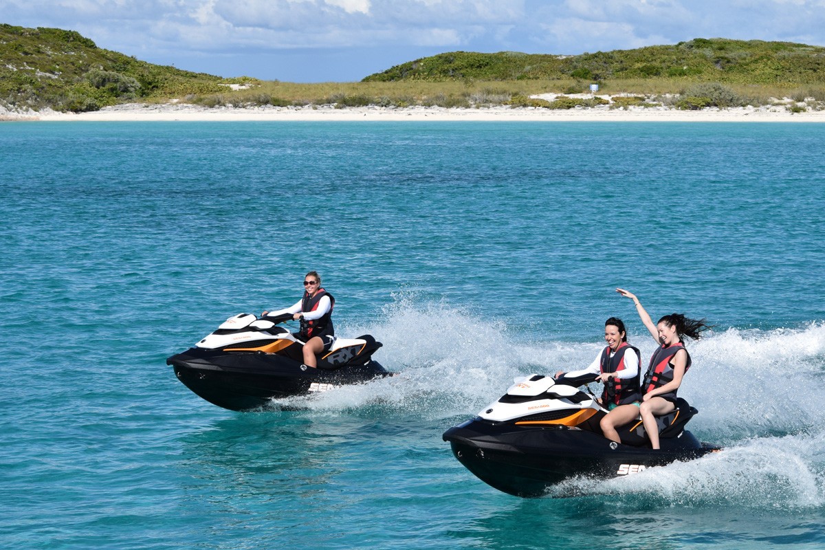 The sundeck has two L-shaped sofas and a coffee table to the aft, with the central area offering gym equipment for an alfresco workout.