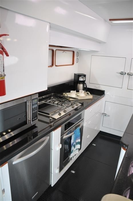 Patient Falcon will accommodate six guests in three cabins and offers state of the art technology on board including plasma TV's and surround sound system.
