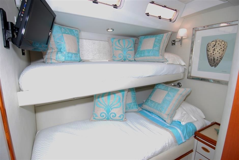 Patient Falcon will accommodate six guests in three cabins and offers state of the art technology on board including plasma TV's and surround sound system.