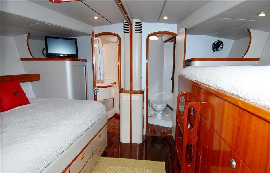 Patient Falcon will accommodate six guests in three cabins and offers state of the art technology on board including plasma TV's and surround sound system.
