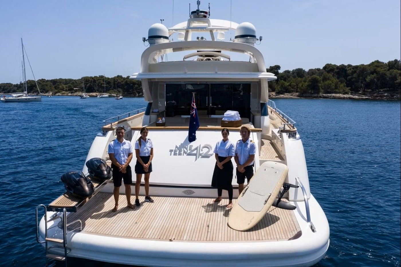 She sleeps up to 10 guests over four en-suite cabins and a crew of three for a professional yet discreet service.
