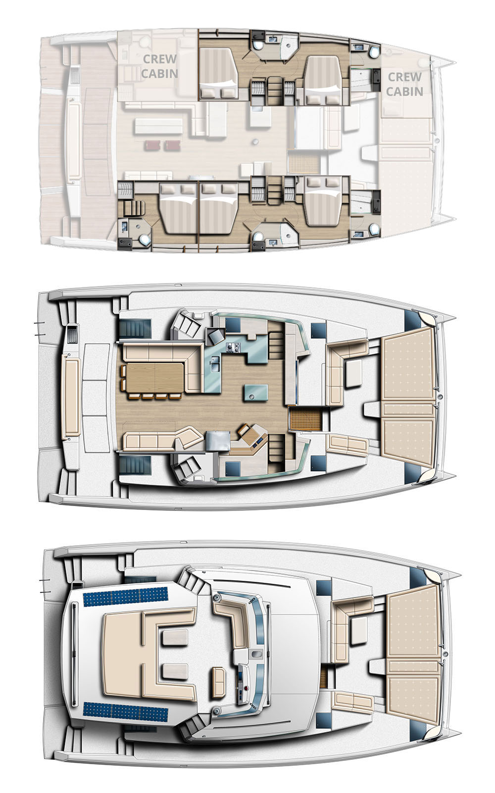 Sailing catamaran ALLURE is a Catana designed yacht measuring 16.8m (55'), she accommodates 10 charter guests, over 5 cabins and has a crew of 2.