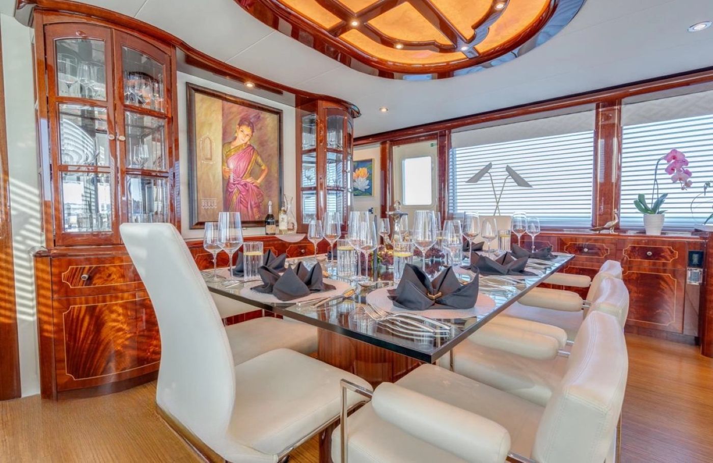 The 35m.36m/116ft superyacht NAMASTAY (ex QTR, MONEY FOR NOTHING, LE BON JOU JOU) from Lazzara Yachts was built in 2009 and constructed with a lightweight GRP hull and superstructure. The naval architecture and exterior styling is the work of the shipyard, who also worked as a collaborator on her interiors.