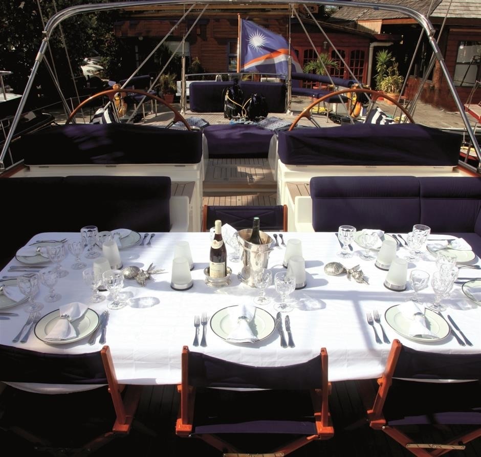 The master cabin, situated aft, has a queen size bed and is fully air-conditioned. It also has a lounge area with a desk, satellite TV, DVD and CD sound system. The other two cabins are twin cabins and also have their own ensuites and air-conditioning.