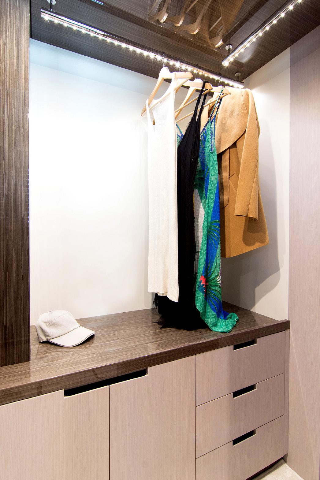 The open-plan main salon to the aft places the formal dining area forward, where up to eight guests can dine in glamorous contemporary style while savouring the views out of the windows to either side.