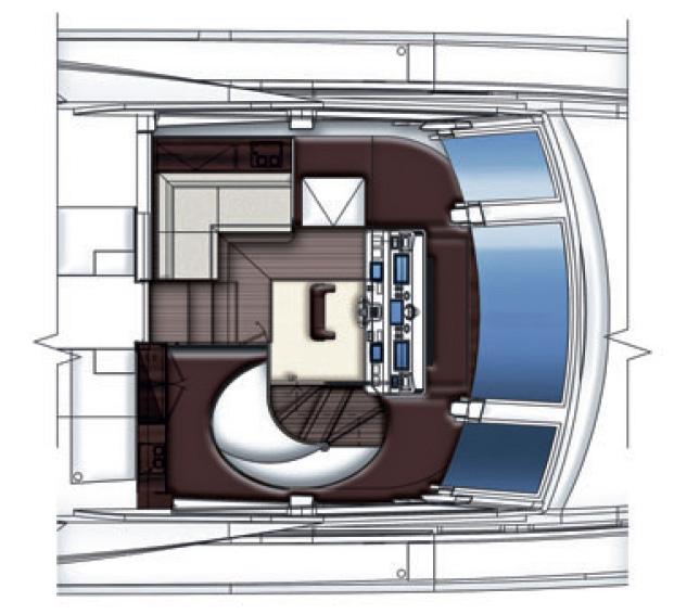 ~ The Master suite on the main deck forward contains a king-sized bed, wardrobe, a pair of armchairs and a coffee table and a widescreen TV concealed in the forward cabinetry. The forward en-suite bathroom contains his-and-hers sinks, a toilet and a spacious shower.