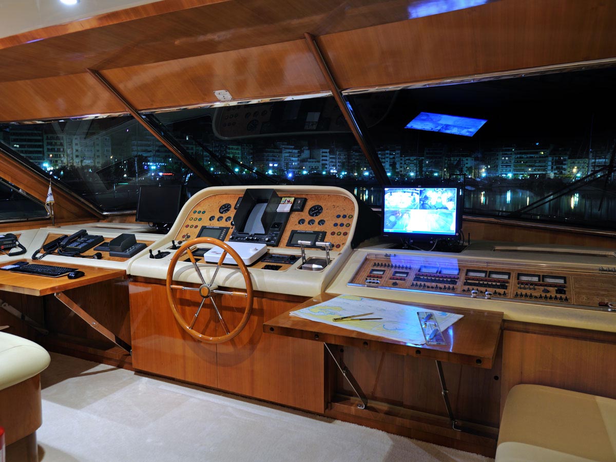 The helm station forward and to starboard has uninterrupted views of the surroundings and provides another place for guests to sit and relax when it is not in use.