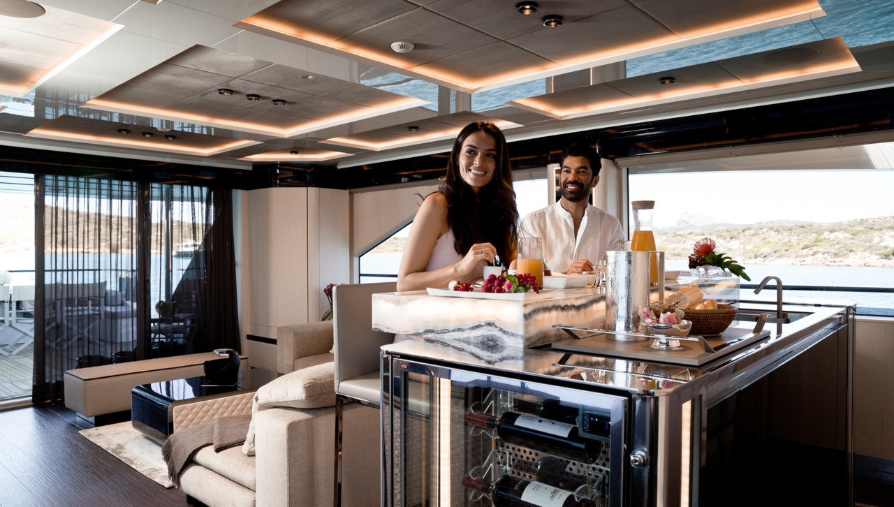 Her naval architecture was created by Andrea Agrusta with modern interior design by Alberto Mancini. This spacious semi-displacement motor yacht offers accommodation for up to ten guests overnight in five ensuite cabins, while she is serviced by a professional crew of four.