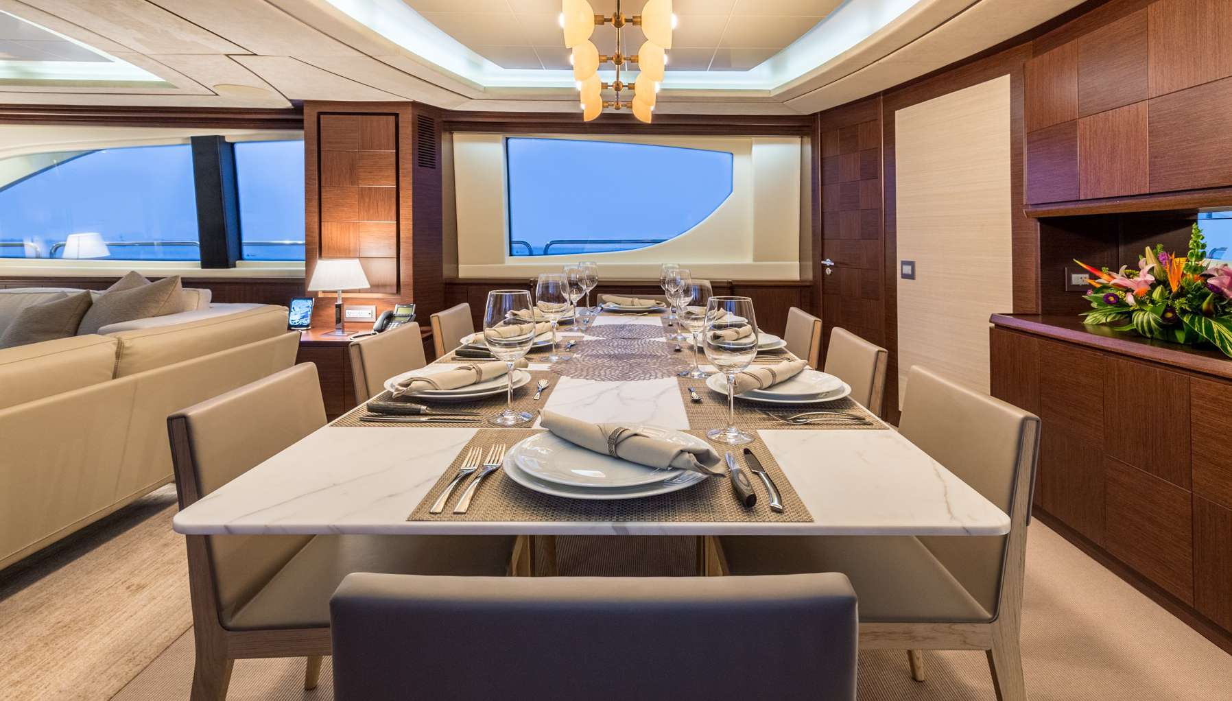 NOTABLE FEATURES OF TIMELESS: ~Hosts up to 35 guests at quayside events ~Calm contemporary interiors ~Two alfresco dining areas ~Excellent range of 2,500 nautical miles ~Air conditioning ~Wi-Fi