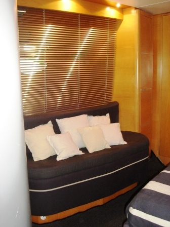 The spacious owners suite has an ensuite bathroom and shower and is located forward. The two guests cabins, each with separate beds are located amidship and also have a separate ensuite bathrooms. Her crew of 2 are accommodated in separate quarters.