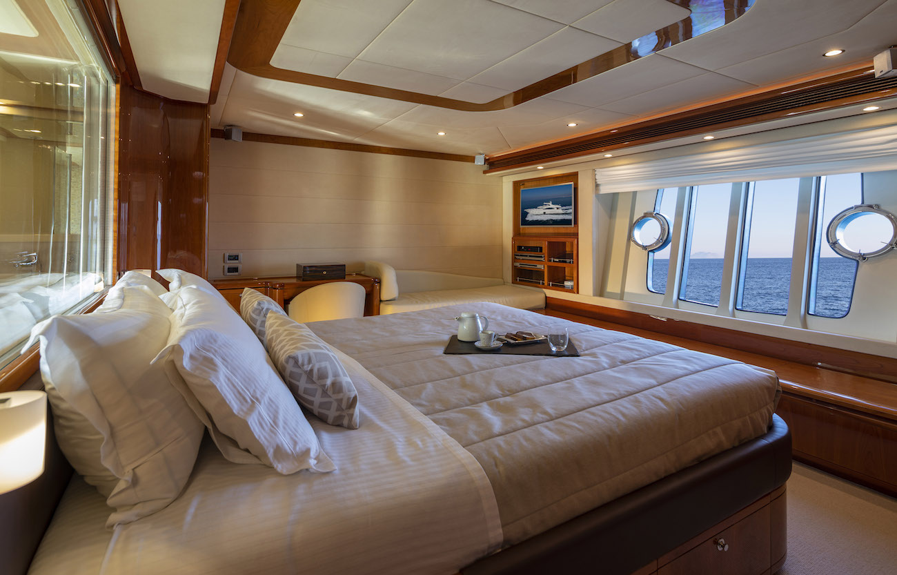 Refitted in 2022 the vessel offers deluxe accommodation for up to nine charter guests overnight providing overnight stay across four beautifully appointed cabins. A crew of four professional and friendly members ensures everyone has a fantastic Greek charter vacation.
