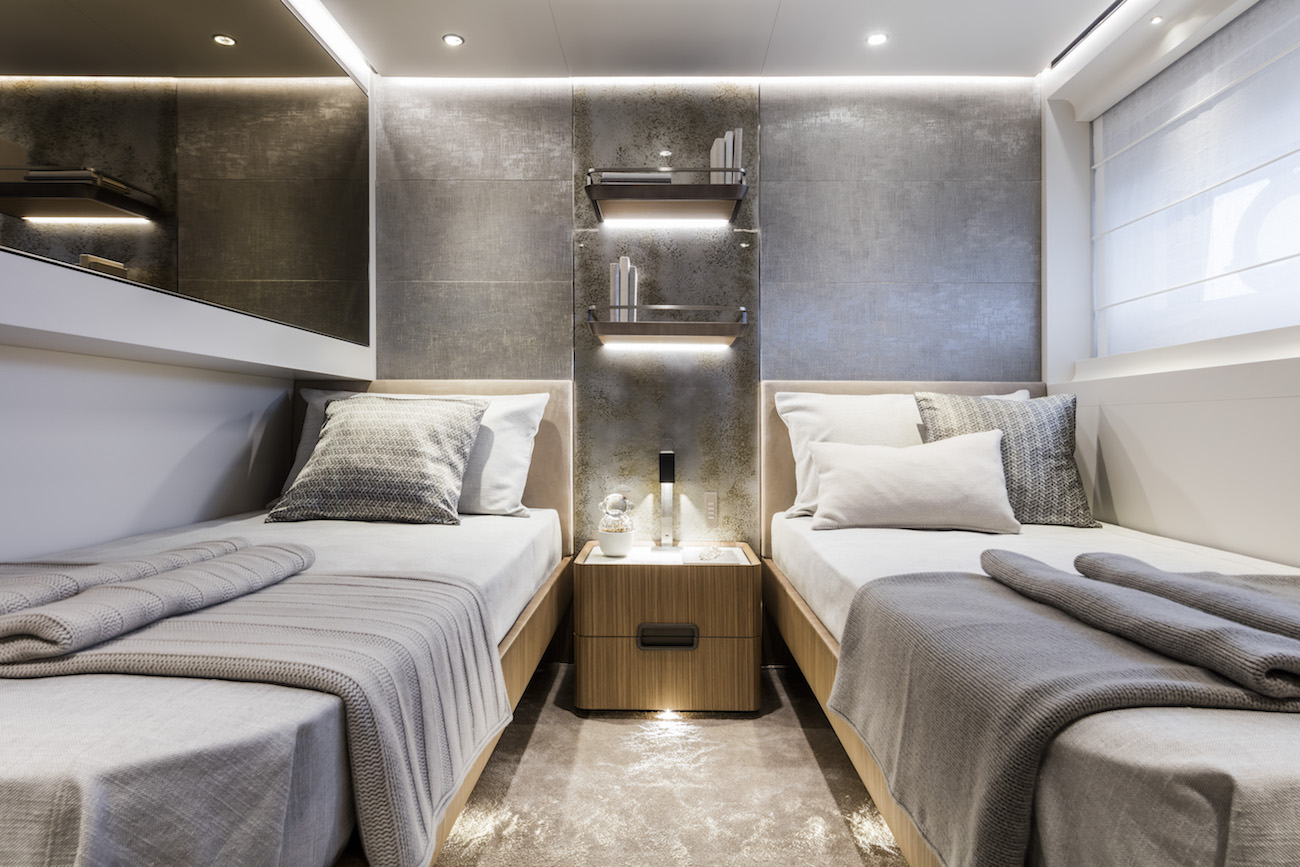 Her sleek exterior design and modern interiors come from Francesco Paszkowski, with the accommodation sleeping a maximum of 12 guests across five en-suite cabins, and a crew of eight for professional service.