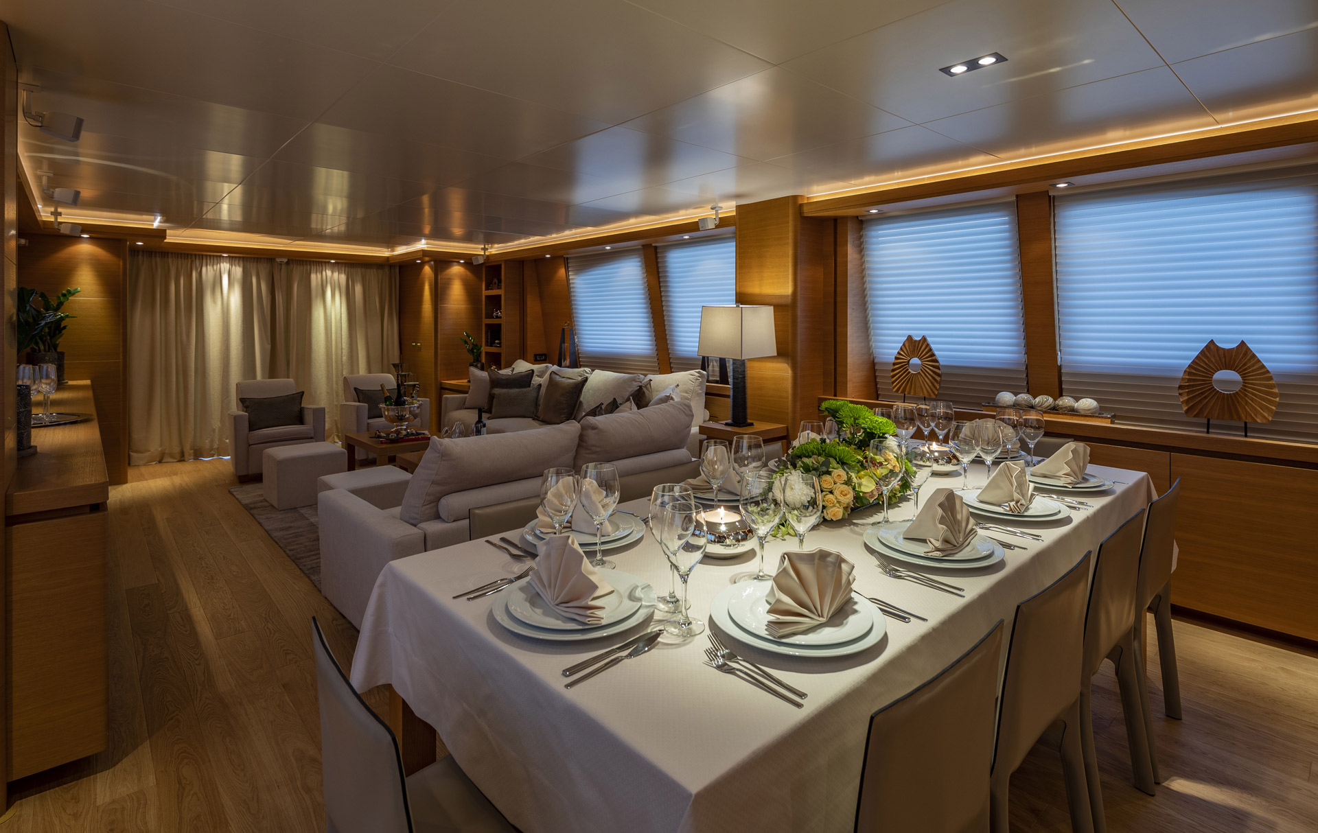 NOTABLE FEATURES OF CELIA: ~65" home cinema on the sundeck ~Kaleidescape entertainment system ~RINA classification ~Top speed of 28 knots ~Gym equipment ~Air conditioning ~Wi-Fi